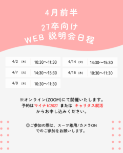 4月前半のWEB会社説明会の日程を追加いたしました。